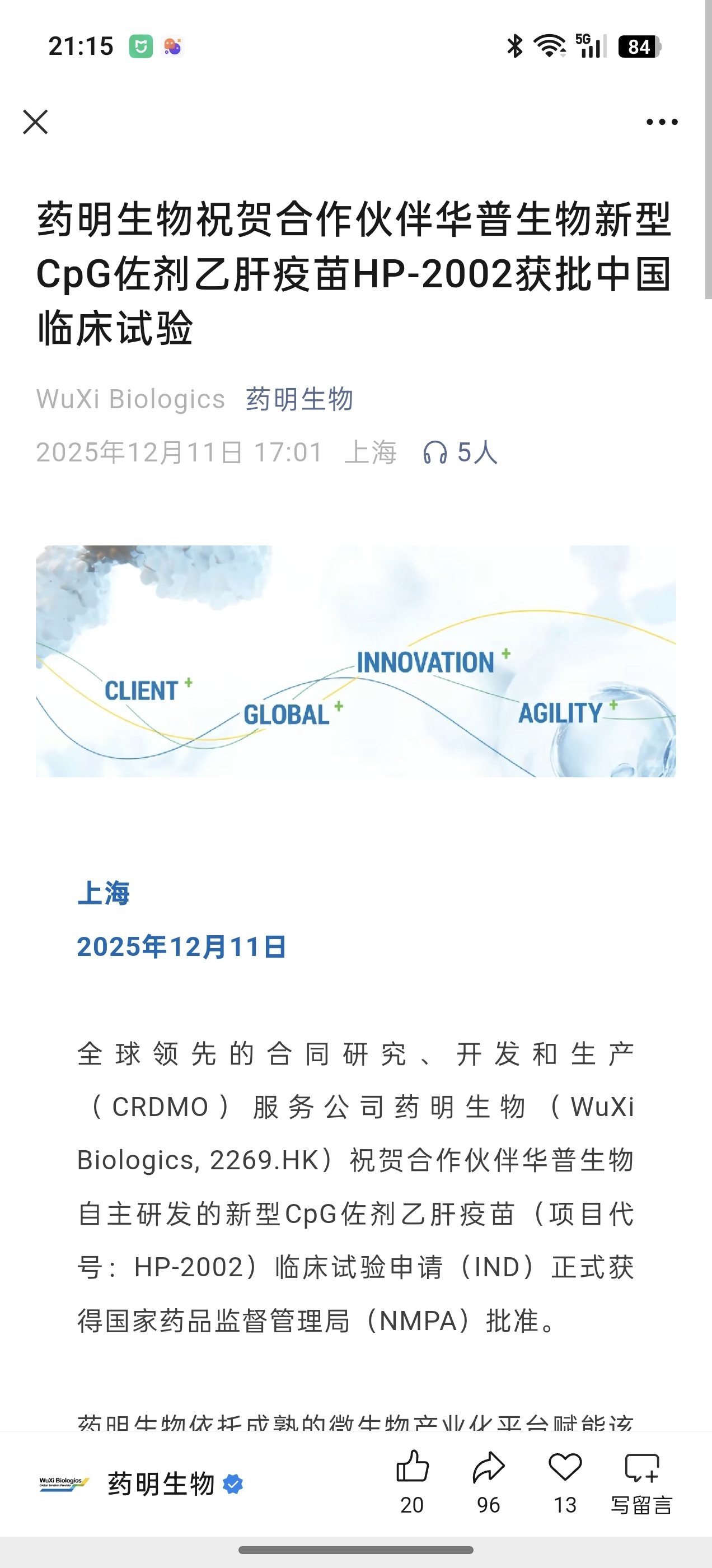 这要不是利好真不知道什么是利好了$药明生物(HK|02269)$ 经过两个多月的深度回调,所有利空均已落地,风险厌恶情绪释放到位,叠加企业不断高速发展,一飞冲天指日可待