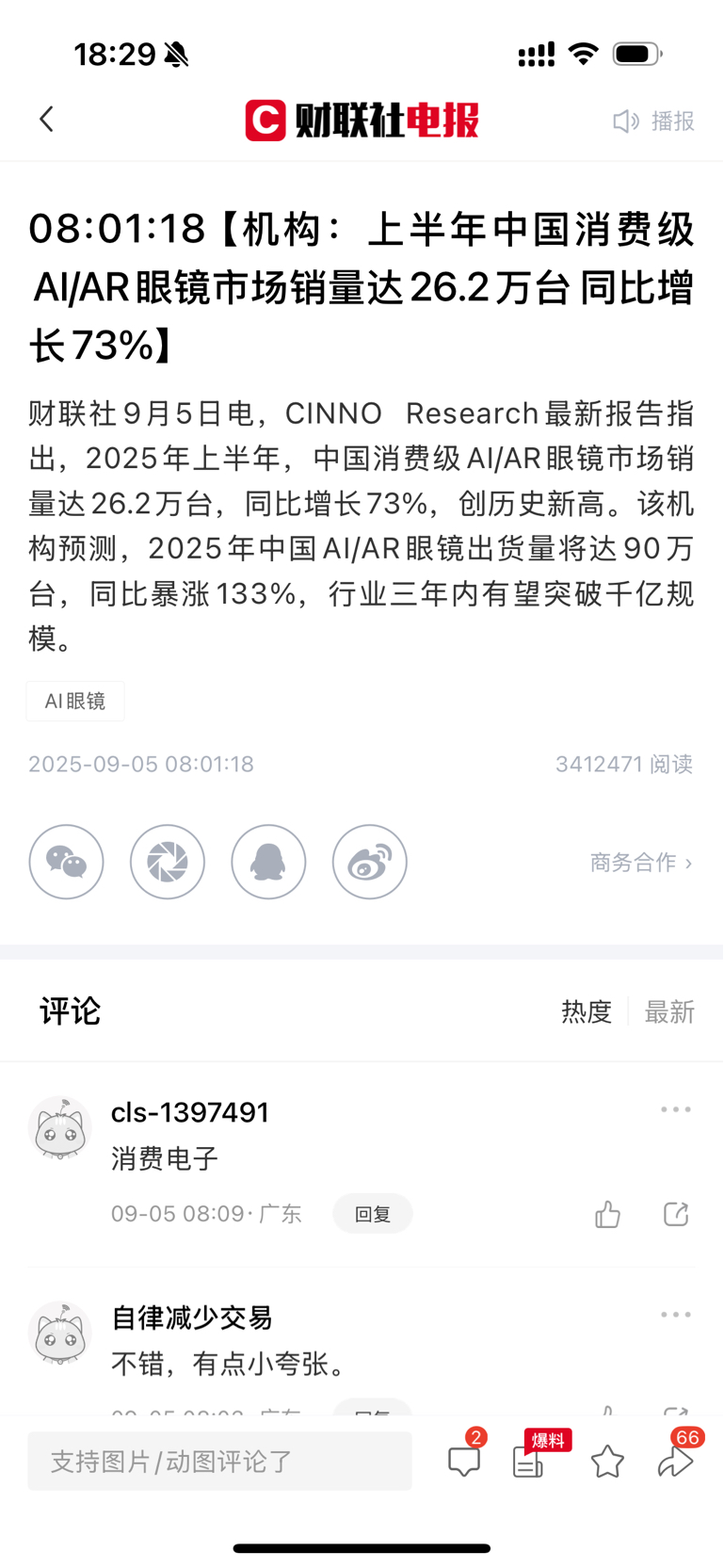 位置有点高刚刚入通不受欢迎呀,但是AI/AR眼镜确实是一个大增量