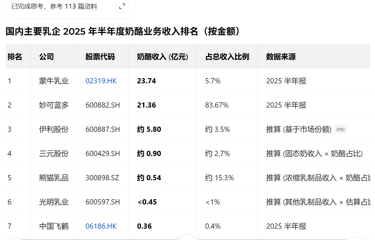 国内乳企中,蒙牛奶酪业务布局应该是最好的,形成“妙可蓝多+蒙牛奶酪+爱氏晨曦”的多品牌矩阵。从估值角度,今年妙可蓝多涨的比较多了,动态市盈率60多,蒙牛是妙可蓝多的大股东,还是拿些蒙牛感觉更好。重大突破!蒙牛首批深加工乳品试产上市 引领乳产业链跨越升级_蒙牛官网
