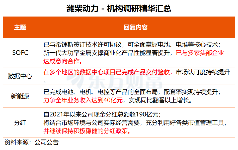 潍柴动力:持续深耕SOFC领域 新能源业务力争全年收入翻番
