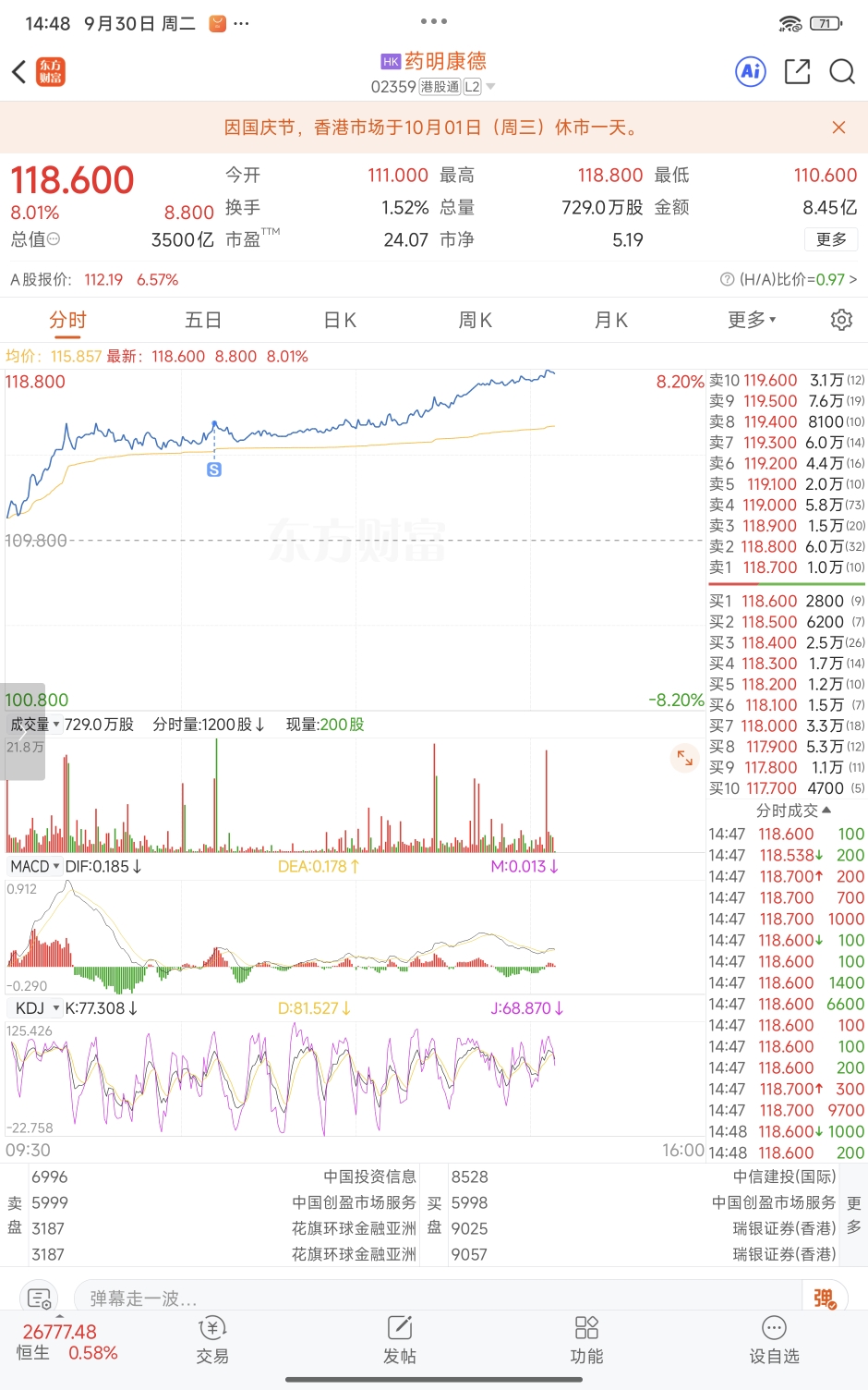 $药明康德(HK|02359)$ 卖飞了 还能涨吗 想接回来 急!!!在线等