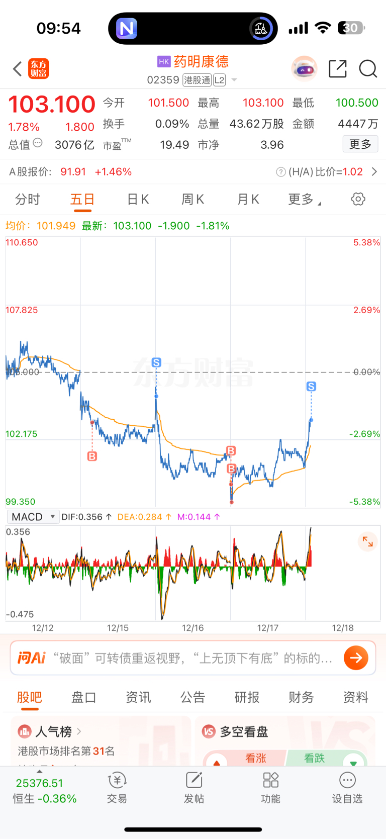 $药明康德(HK|02359)$ 昨天入今天出,清仓