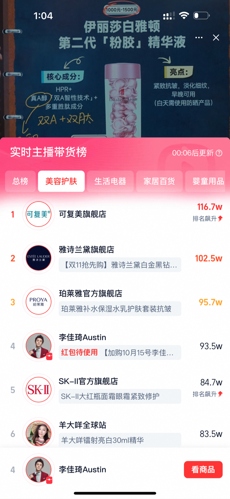 播着呢,佳琦小课堂刚讲完可复美和可丽金。