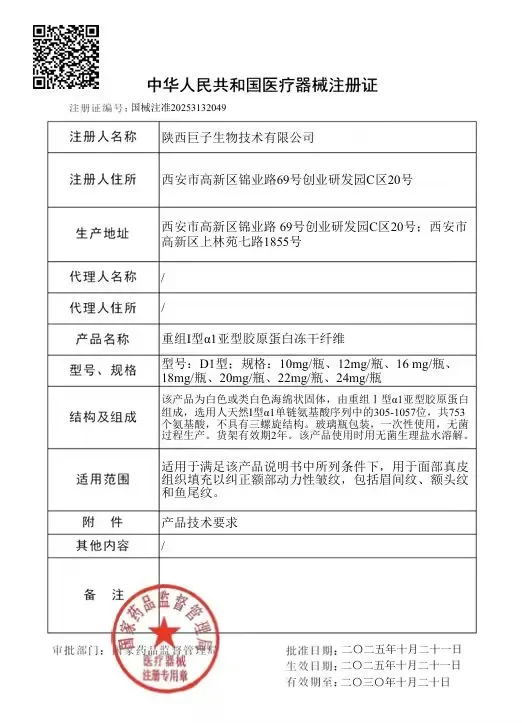 消息面上,最新消息, 公司旗下自主研发申报的“重组I型α1亚型胶原蛋白冻干纤维”械三类证获NMPA批准上市,注册证编号:国械注准20253132049。