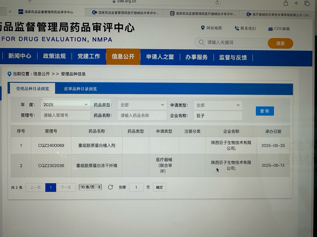$巨子生物(HK|02367)$ 本次审批通过的应该是图一公司6月份申请的,这么快就审批通过,8月份还申请了一个植入剂,还有一个去年12月份申请的优先纳入审批的蛋白填充剂,慢慢等着吧