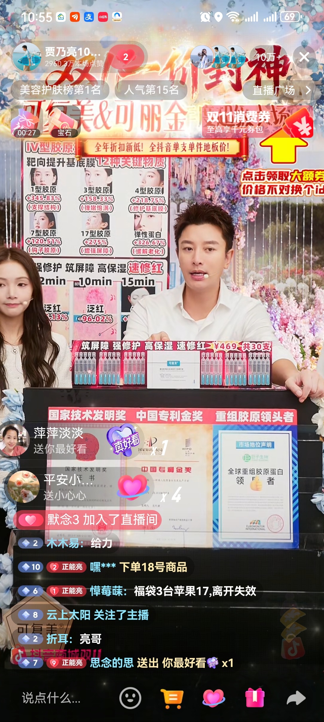 亮哥直播间,人数始终10万+,带货总榜第三,美容榜第一,一个多小时,已经1.7万