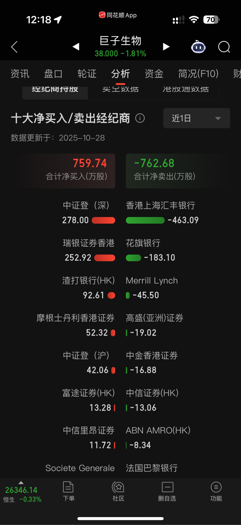 $巨子生物(HK|02367)$ 最近的下跌全是汇丰空头 他是直接卖 你根本看不到他的挂单 往下砸着卖