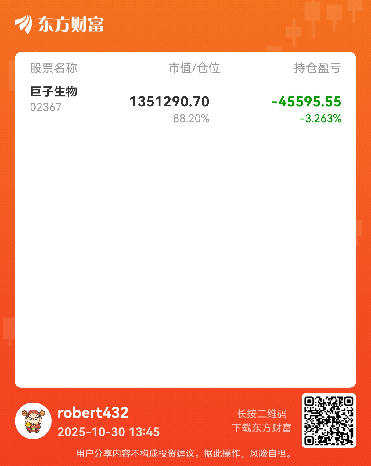 温馨提示: 1.根据《证券法》规定,禁止编造、传播虚假信息或者误导性信息,扰乱证券市场;2.用户在本社区发表的所有资料、言论等仅代表个人观点,与本网站立场无关,不对您构成任何投资建议。用户应基于自己的独立判断,自行决定证券投资并承担相应风险。《东方财富社区管理规定》