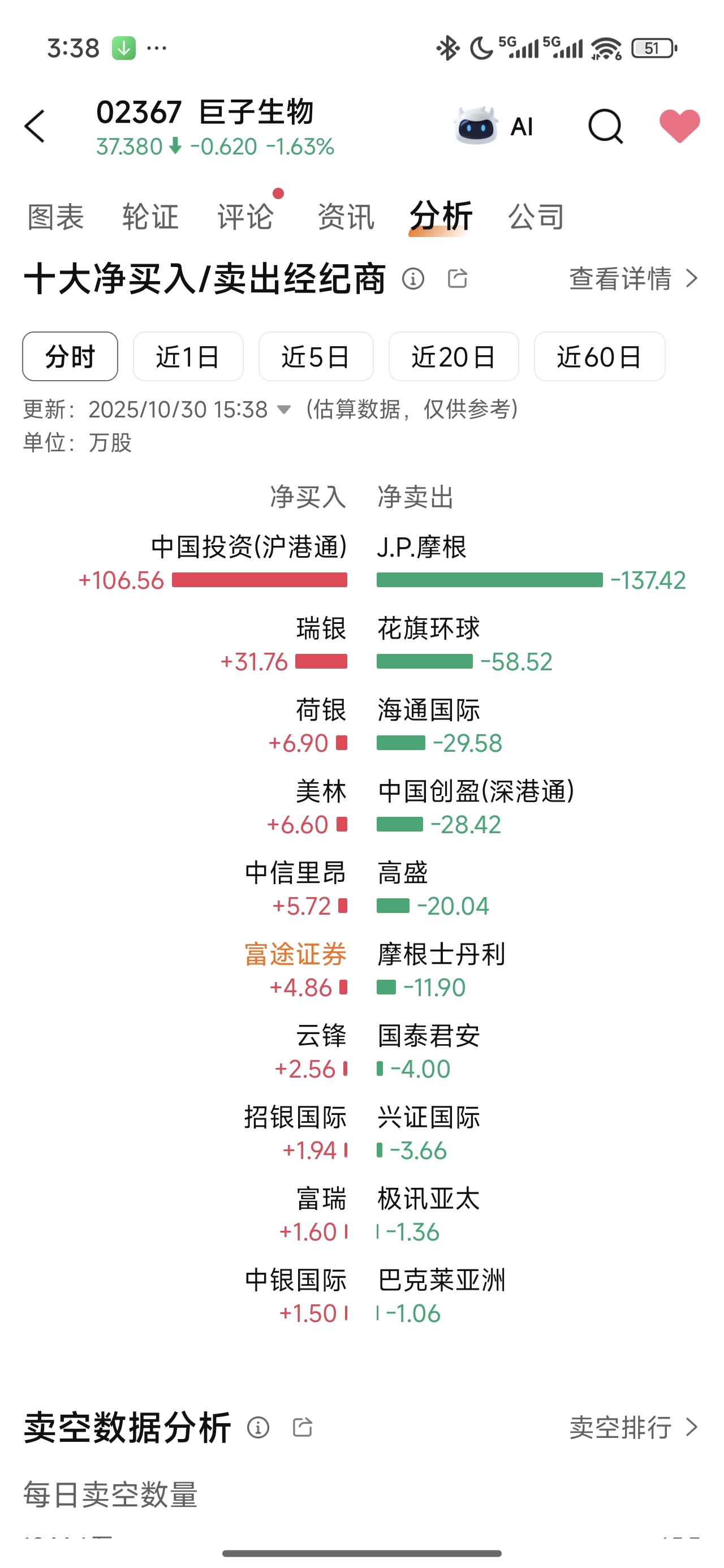 $巨子生物(HK|02367)$ jp借着汇丰的股做空,jp已经不更新持仓了,每天都是它砸的