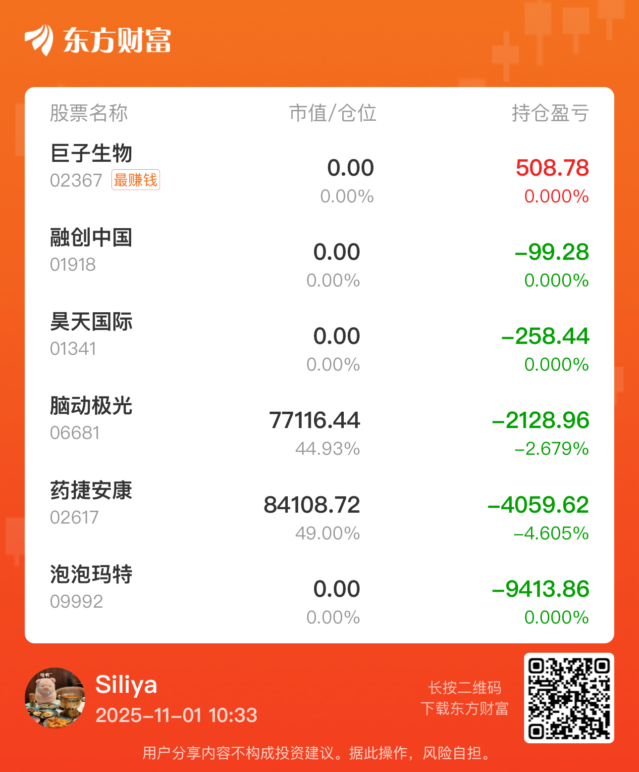 持仓公开最赚钱股票:今作: