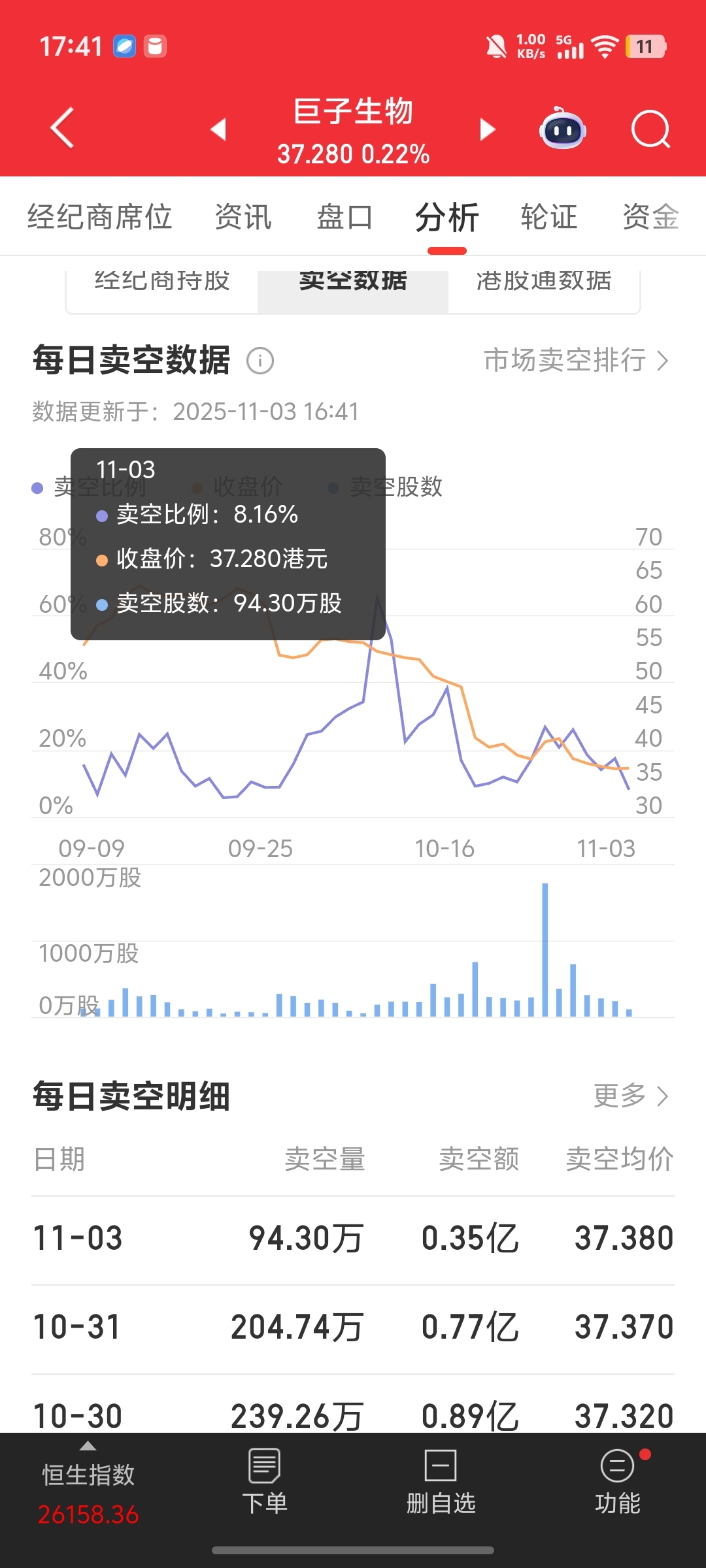 $巨子生物(HK|02367)$ 请教一下,截止今日收盘,累计未平仓空头数据哪里能看到?