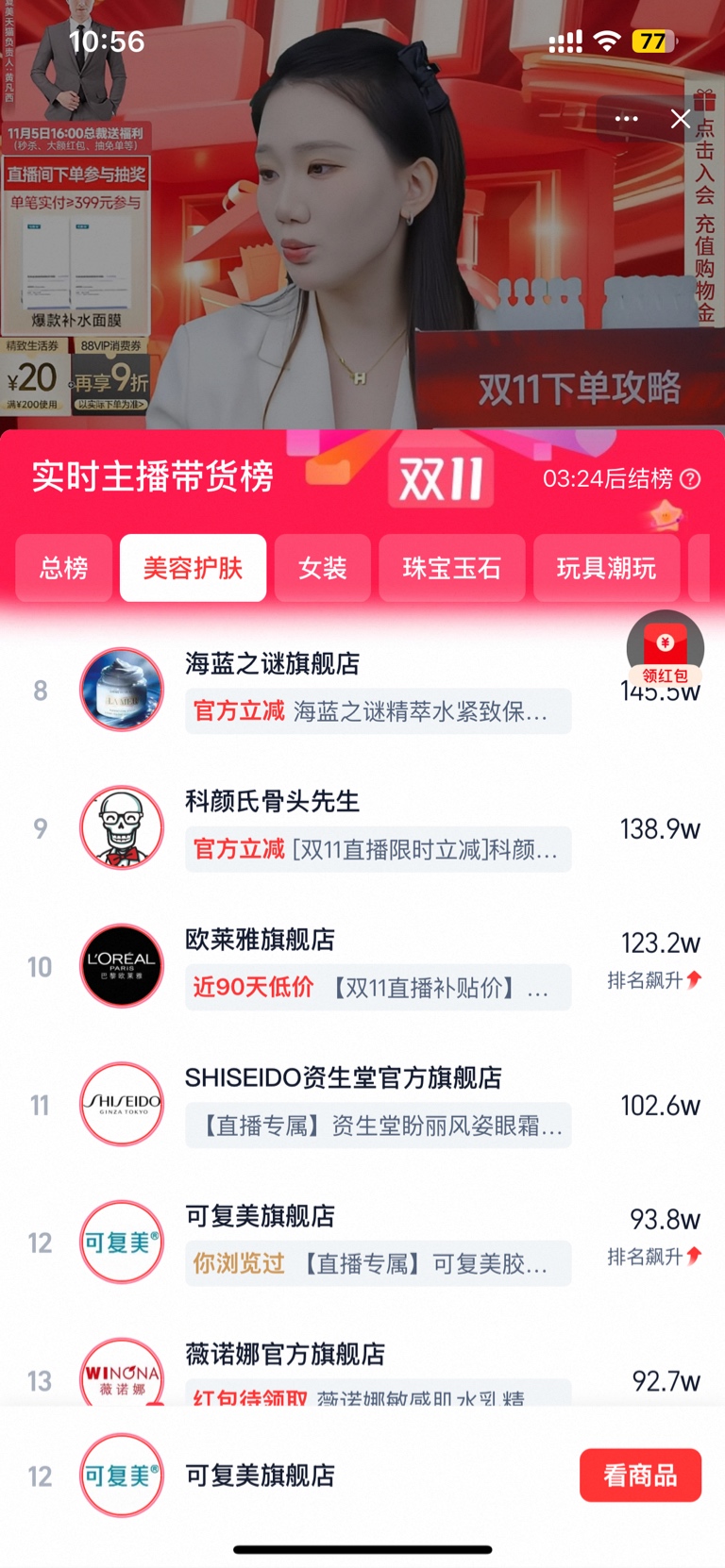 $巨子生物(HK|02367)$ 直播间热度与销量排名每天上升,怕什么,干就完了