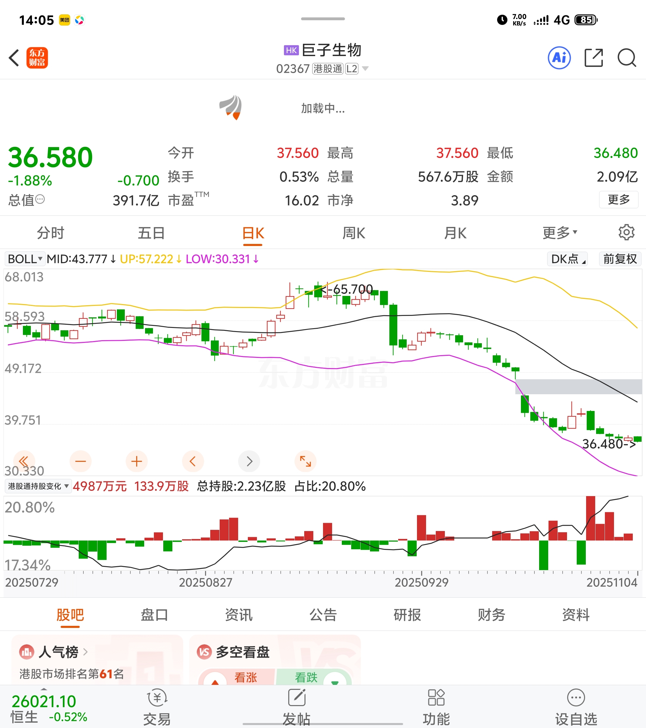$巨子生物(HK|02367)$ 巨子蛮坚挺啊,过了一周还是36,继续等待吧!