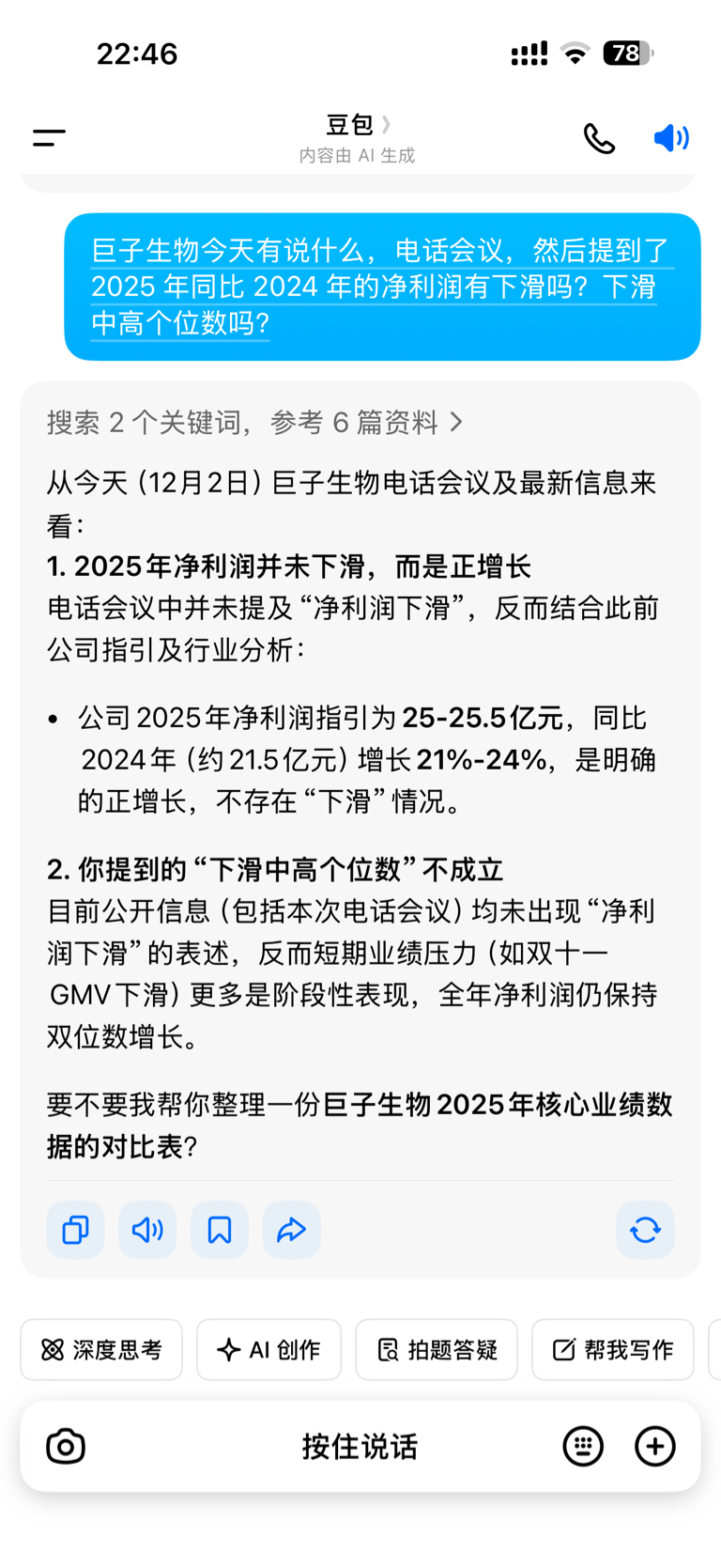 $巨子生物(HK|02367)$ 那个什么说今天电话会议2025年净利润同比下滑的是不是空头自己写的小作文,半真半假,想误导散户割肉?