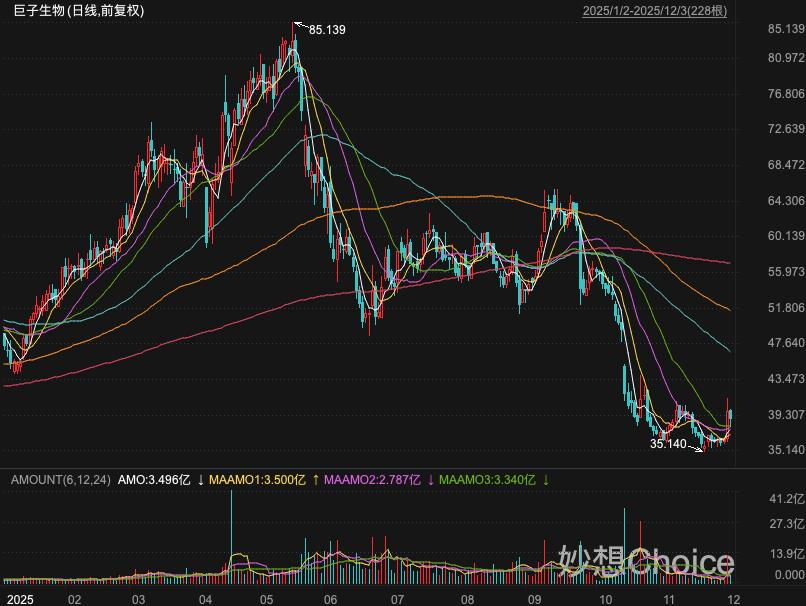 12月2日,港股医美龙头巨子生物(02367.HK)久旱逢甘霖。受午间披露的“拟回购不超过10%股份”重磅利好刺激,公司股价午后直线拉升,收盘大涨8.53%,报39.70港元,给持续阴跌的二级市场带来了一丝久违的暖意。
