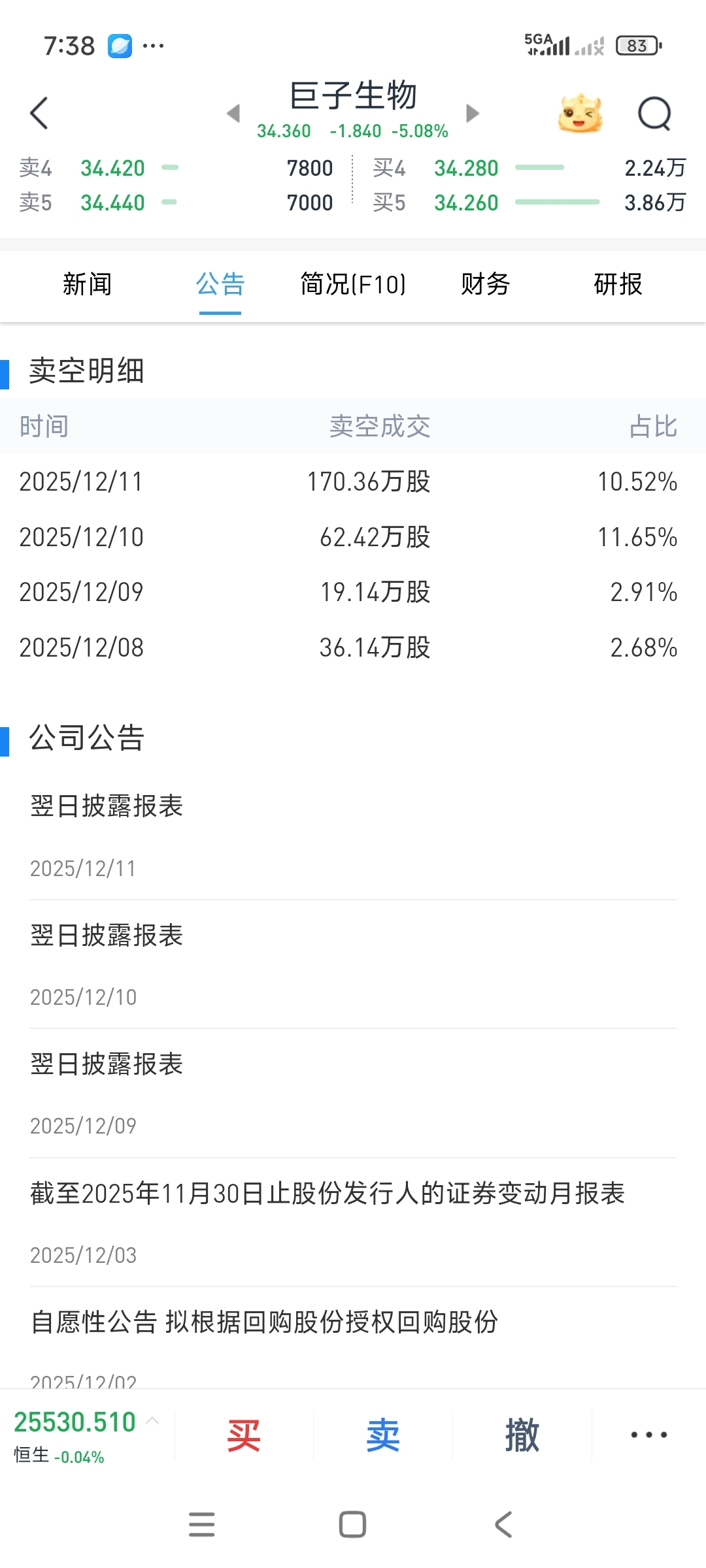 $巨子生物(HK|02367)$ 回购40万股 卖空170万股,空头还在秀肌肉