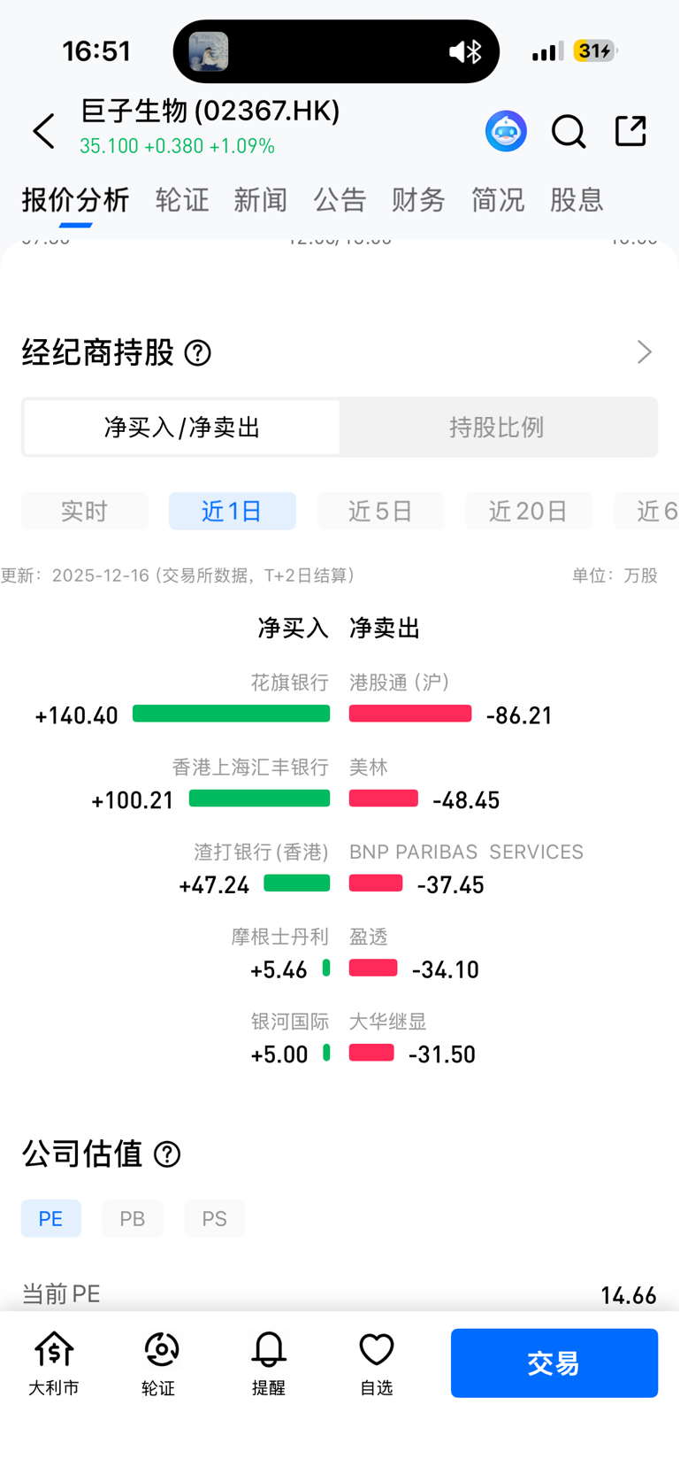 $巨子生物(HK|02367)$ 昨天前两大买入席位花旗 汇丰
