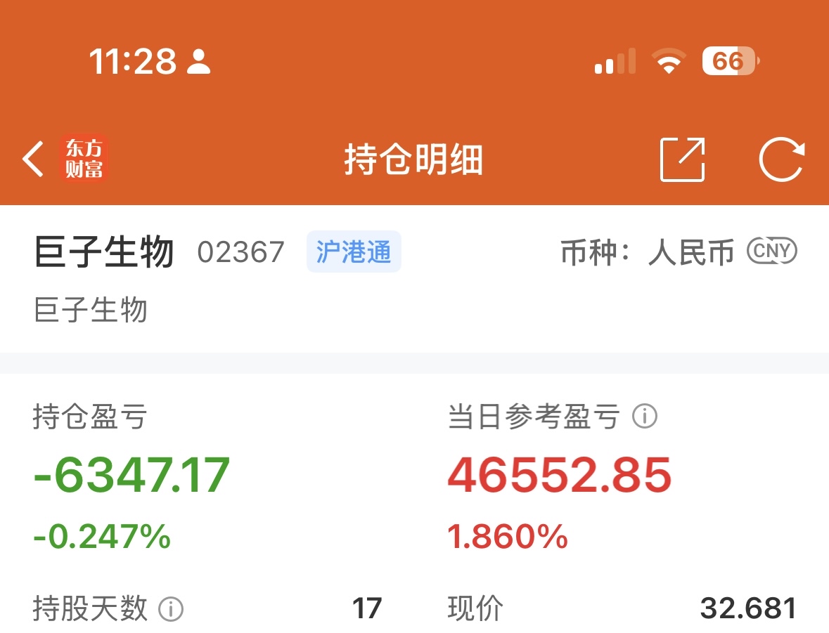 $巨子生物(HK|02367)$ 今日已到成本线 一股没卖