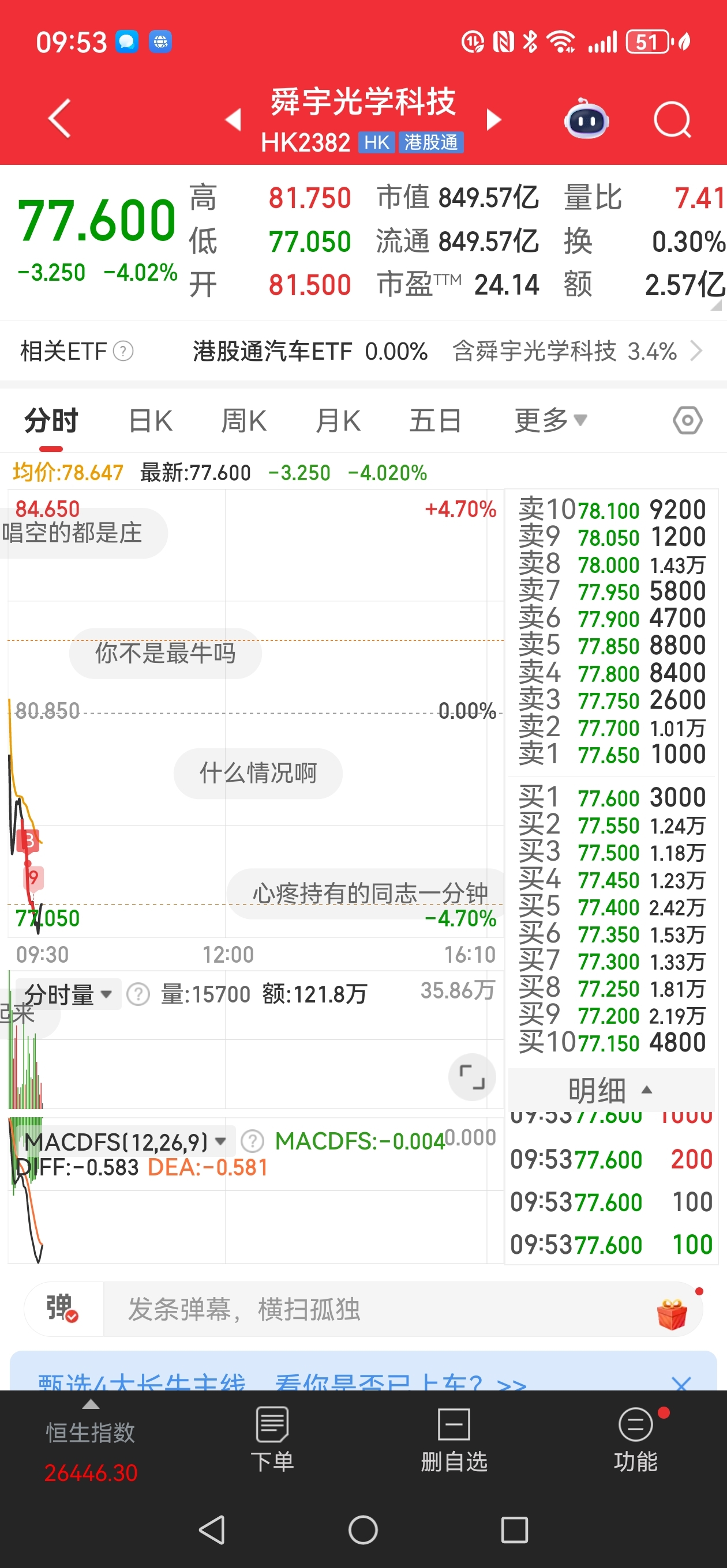 $舜宇光学科技(HK|02382)$ 盘子不足900亿的舜宇光学科技。我低估你了,今天我在78.30跌3个多点的时候补仓,还能补在半山腰。