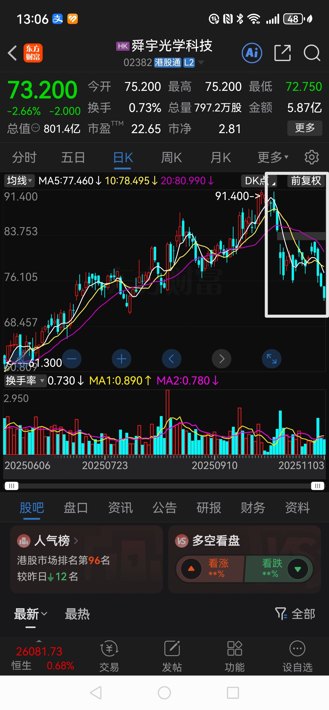 $舜宇光学科技(HK|02382)$ 我开始怀疑人生了。