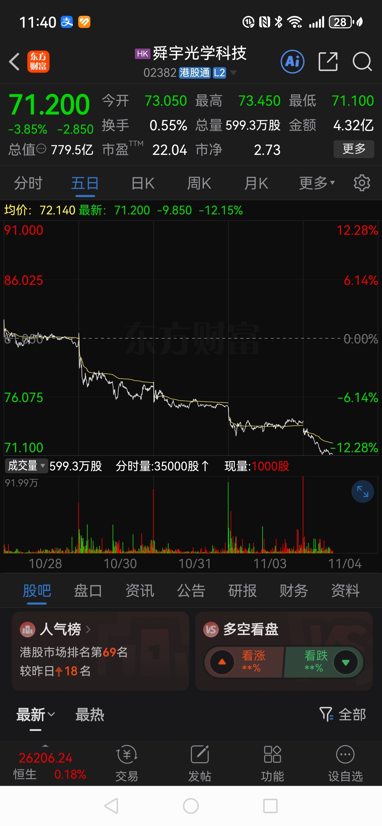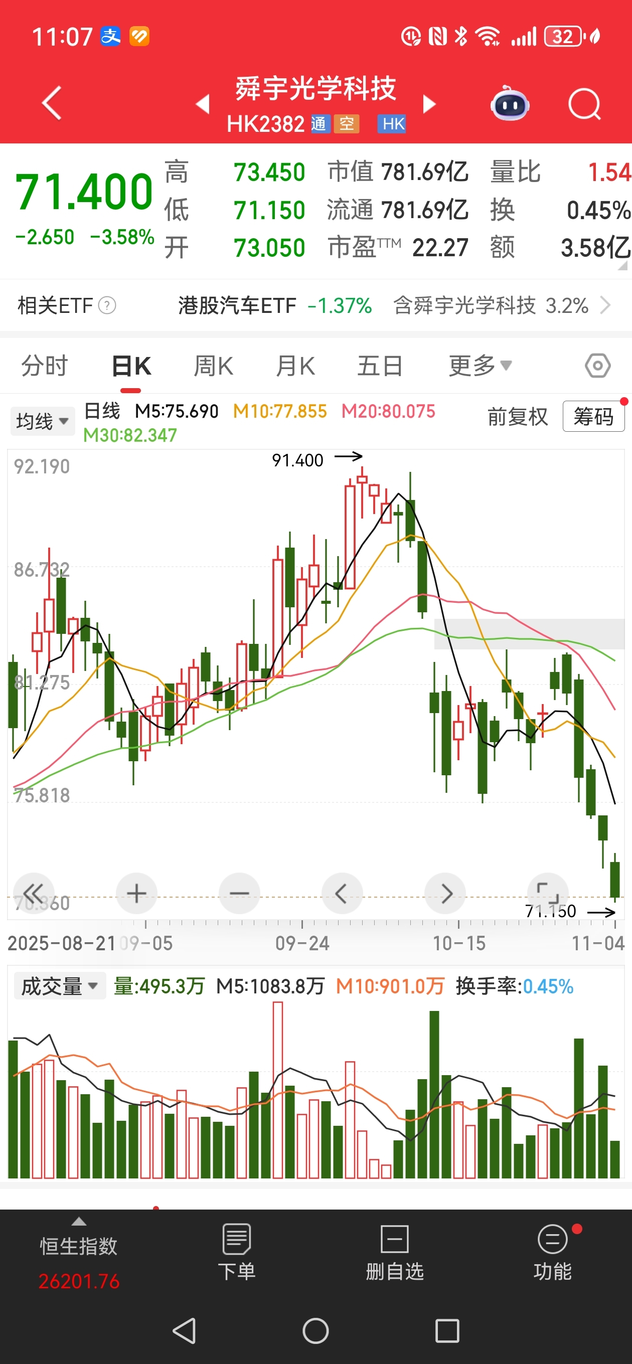 $舜宇光学科技(HK|02382)$ 目前我躺平不操作舜宇光学科技了,补仓不言底。只能静静等待星辰大海。