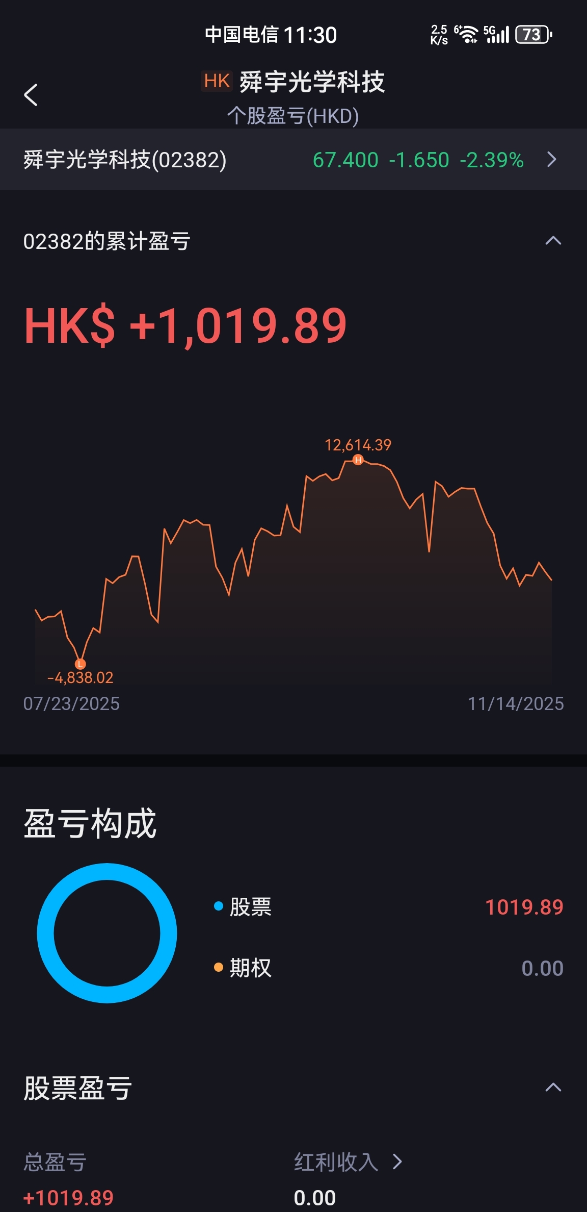 $舜宇光学科技(HK|02382)$ 气的肝疼!!最高时候浮盈一万二,现在只有1千
