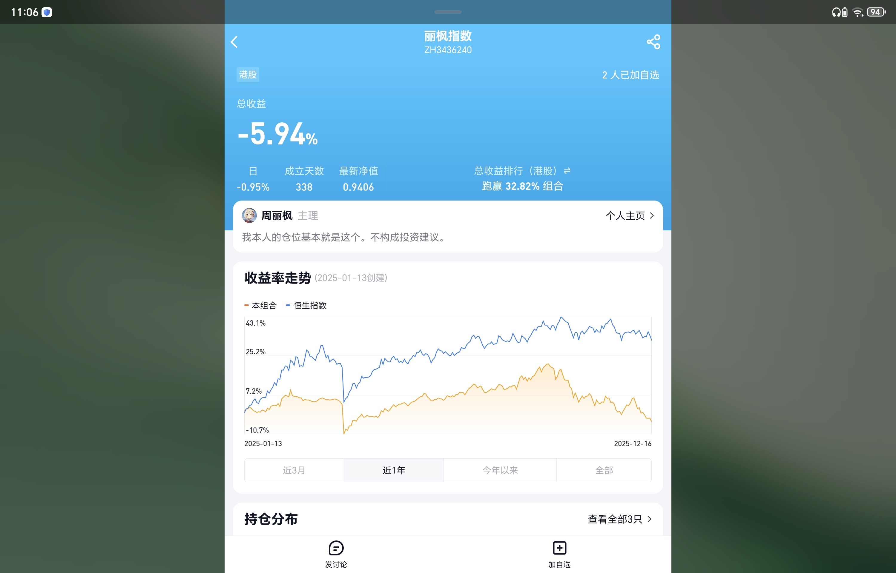 $心动公司(HK|02400)$ 来看看某个称别人为“韭菜”的“大神”@周丽枫 的“顶尖”真实水平,真是猪八戒照镜子,今年这种行情搞个组合从没跑赢过指数、还倒亏成勾,哪来的脸