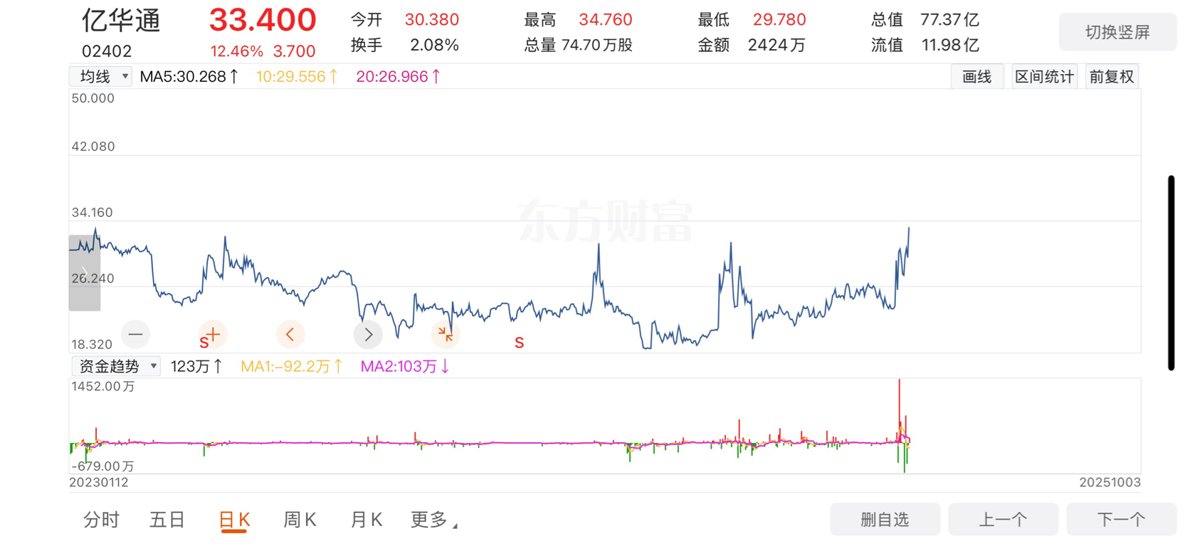 恭喜亿华通H股今日收盘创出2023年2月上市以来历史新高!2025不到50非好汉