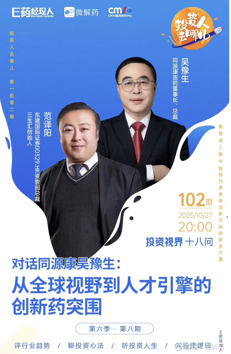 $同源康医药-B(HK|02410)$ 晚上记得去和吴董聊聊人生
