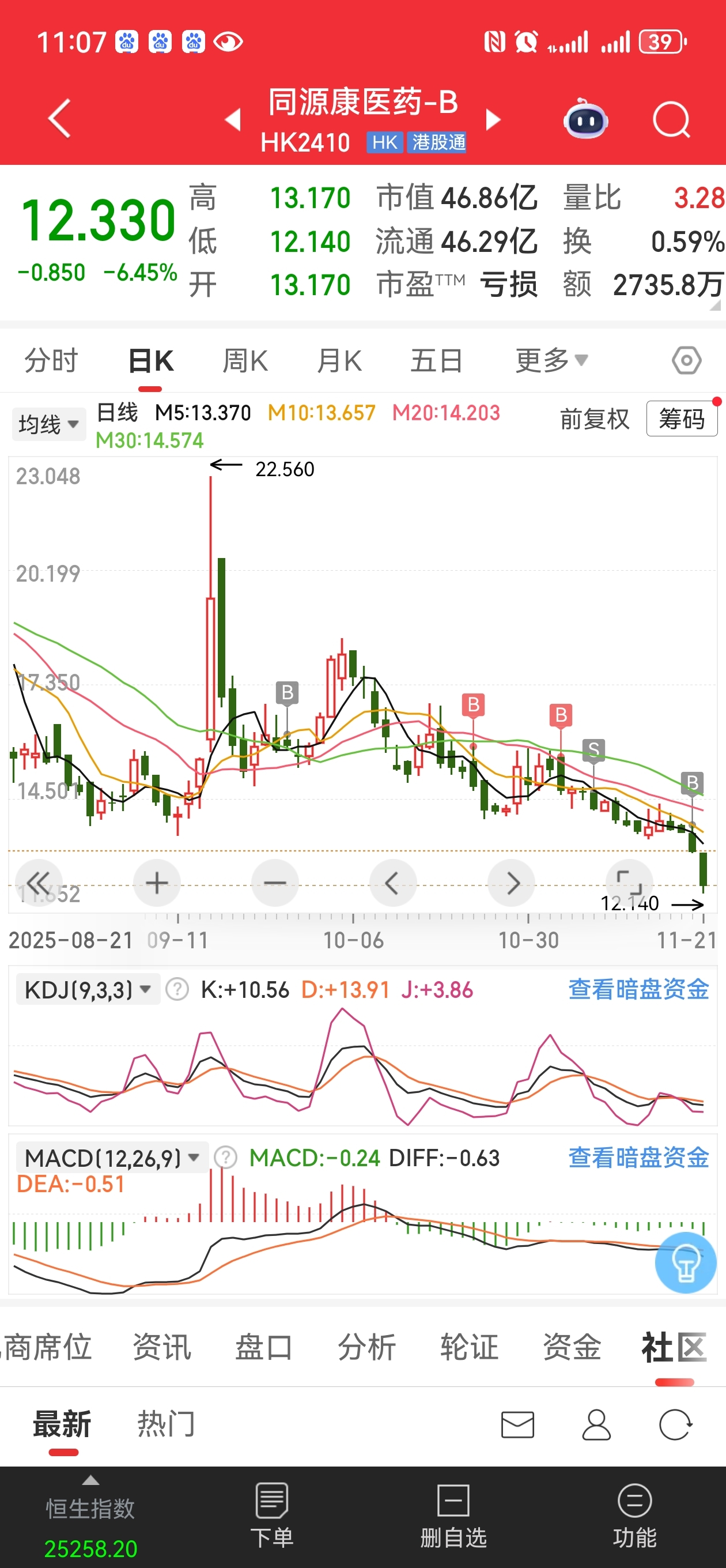 $同源康医药-B(HK|02410)$ 高点买,低点卖,亏了我110W了
