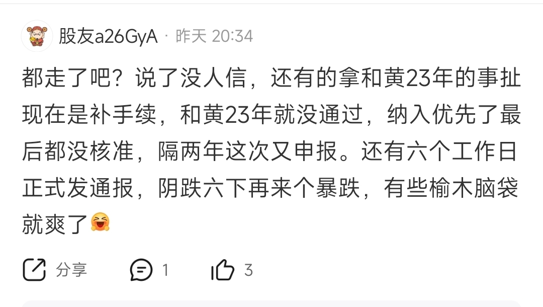 温馨提示: 1.根据《证券法》规定,禁止编造、传播虚假信息或者误导性信息,扰乱证券市场;2.用户在本社区发表的所有资料、言论等仅代表个人观点,与本网站立场无关,不对您构成任何投资建议。用户应基于自己的独立判断,自行决定证券投资并承担相应风险。《东方财富社区管理规定》