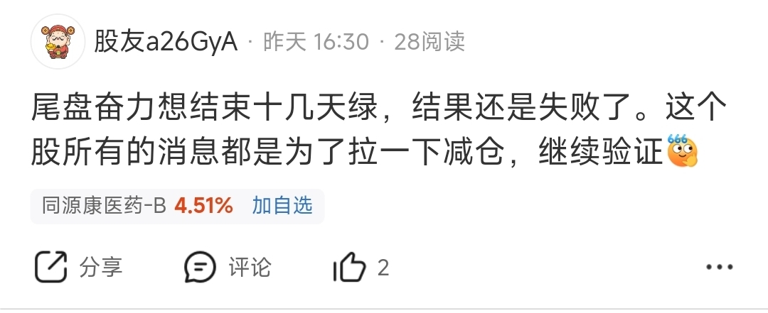 温馨提示: 1.根据《证券法》规定,禁止编造、传播虚假信息或者误导性信息,扰乱证券市场;2.用户在本社区发表的所有资料、言论等仅代表个人观点,与本网站立场无关,不对您构成任何投资建议。用户应基于自己的独立判断,自行决定证券投资并承担相应风险。《东方财富社区管理规定》