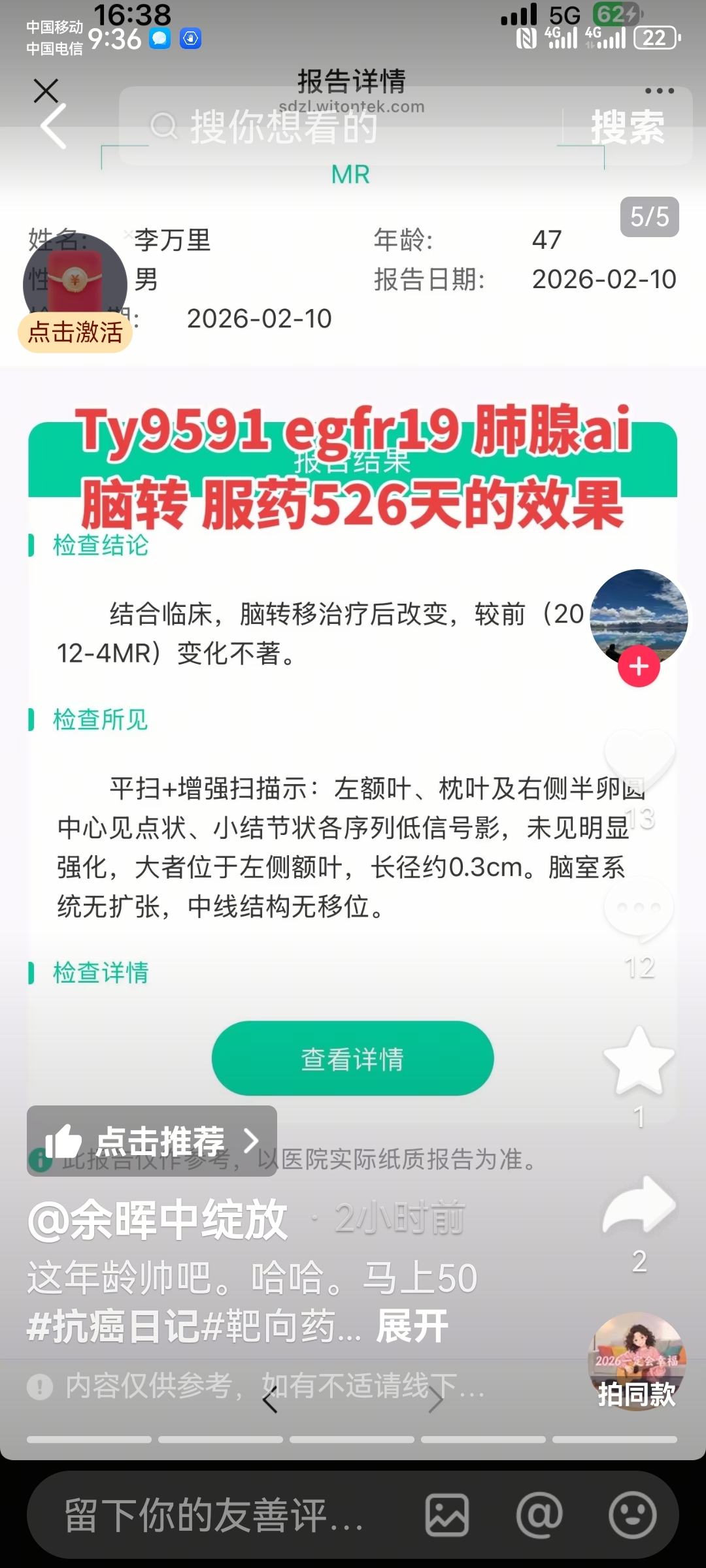 比上一次检查结果又小了0.1CM,这位患者运气真好。神药!