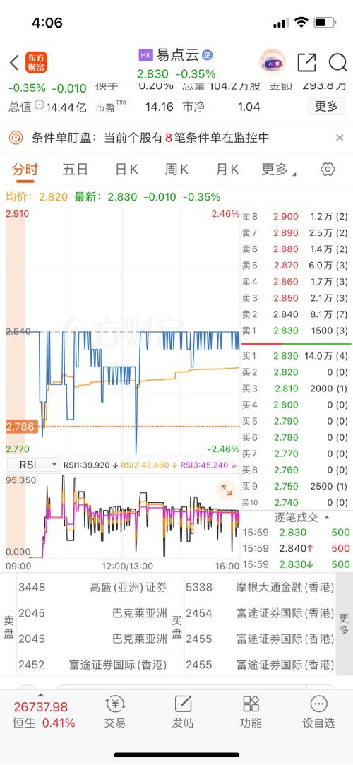 老兄,你没事吧?14万股给1500股压下去。盘中托得那么辛苦,尾盘又放任不管了,明明14万股可以一直吃到2.86,太郁闷了。