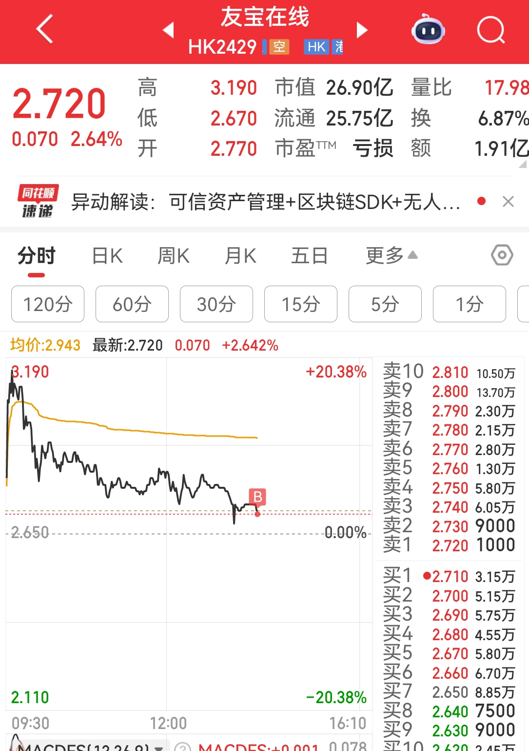 $友宝在线(HK|02429)$ 进来了,轻一点,我怕疼