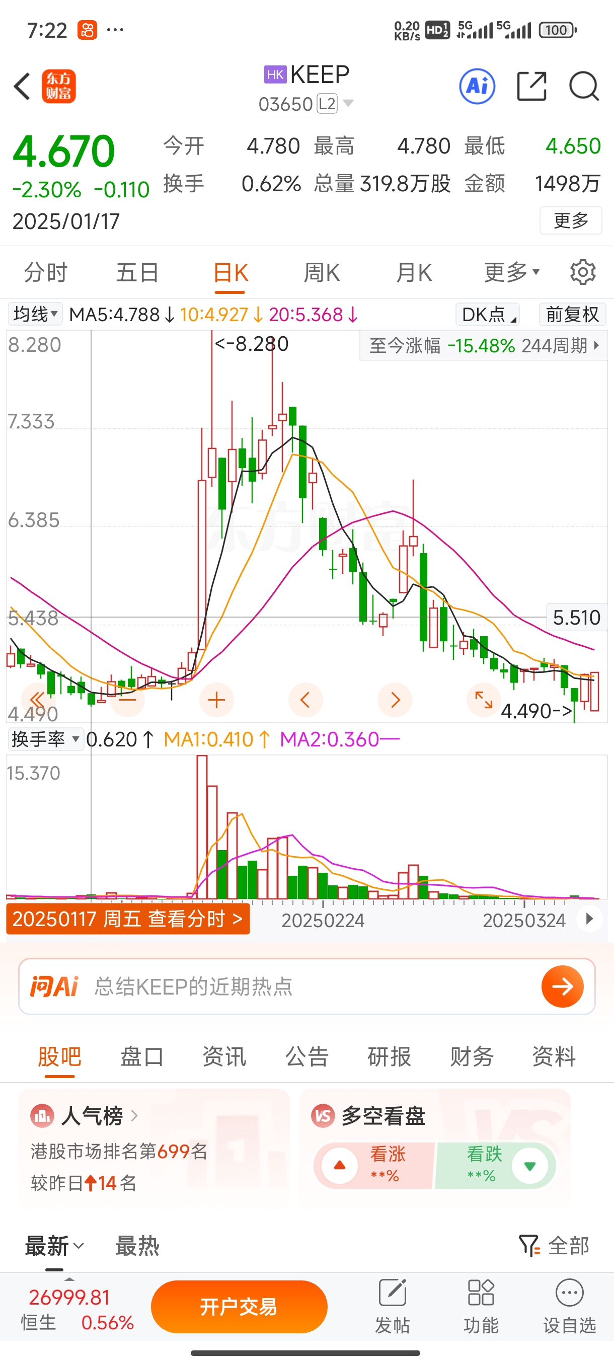 $友宝在线(HK|02429)$ 参考keep退通前走势,3下方套牢筹码有机会出去!今天一天的成交量比一个月成交的还多!明天如果继续放量,有没有机会上4元?今天入坑6万股,赔了8000多,中庆赚的1/4都搭给这个友宝了!