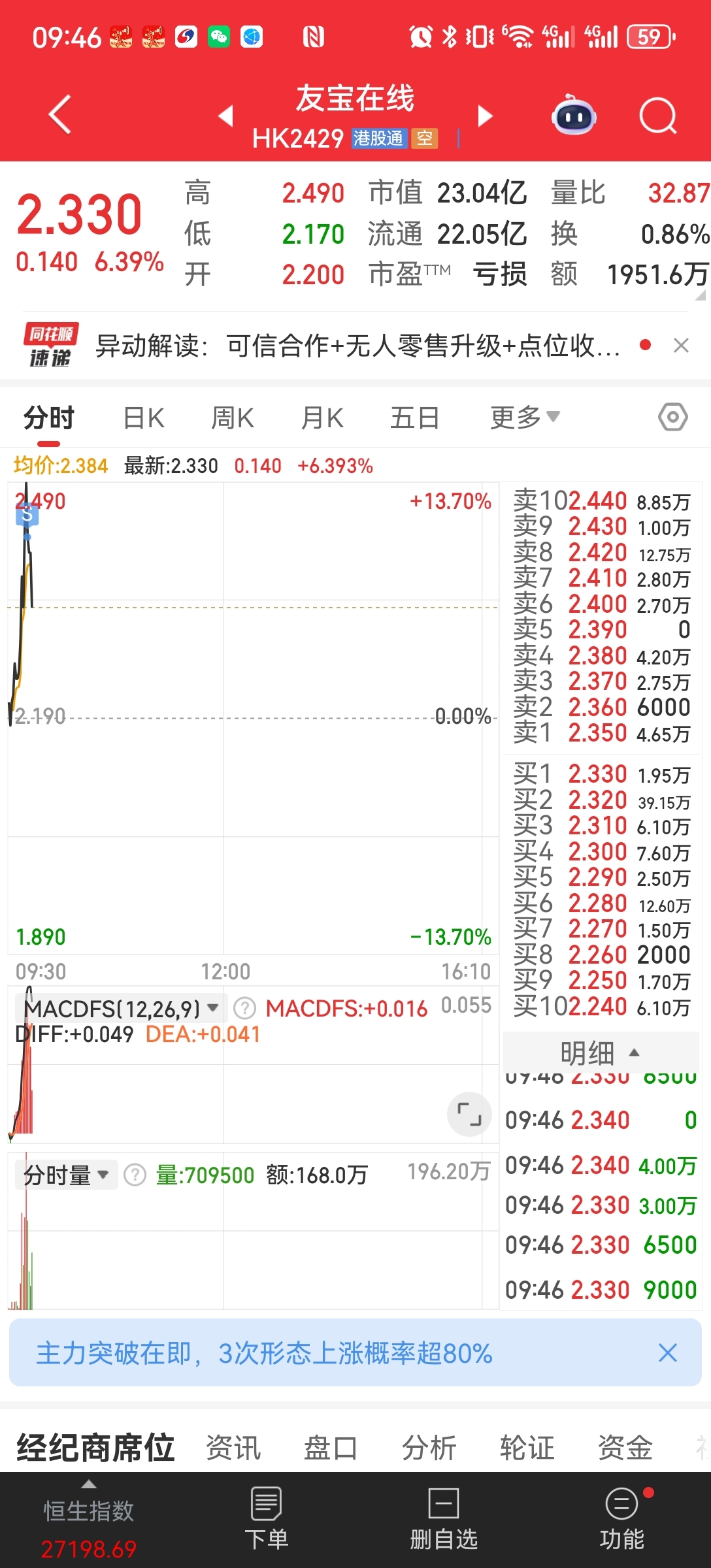 $友宝在线(HK|02429)$ 退通前最后一拉,走了