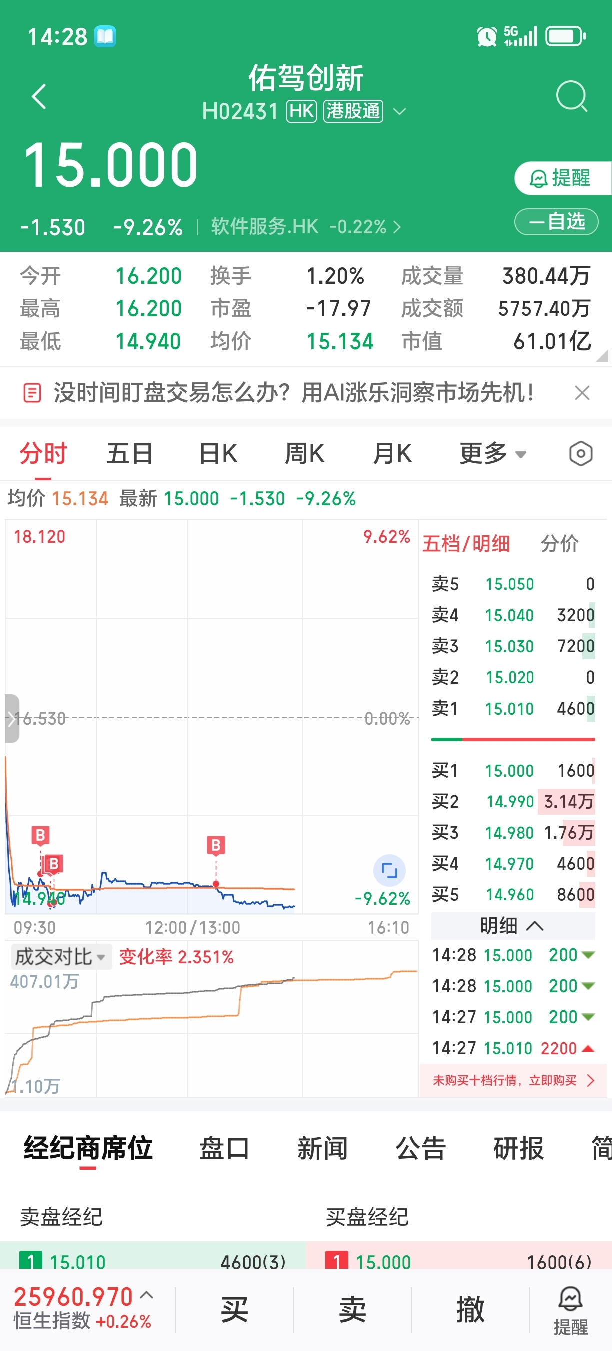 $佑驾创新(HK|02431)$ 只是建个底仓.14我准备全梭哈了