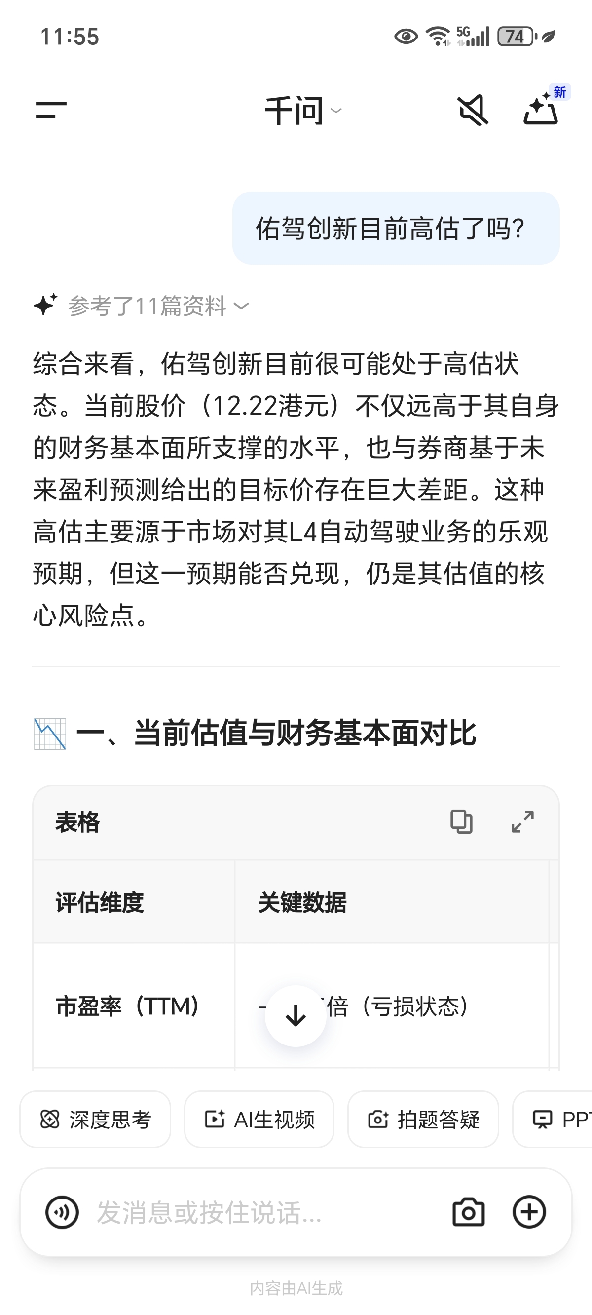 $佑驾创新(HK|02431)$ 千问说佑驾创新目前依然高估,所以大家还是别太快抄底了!