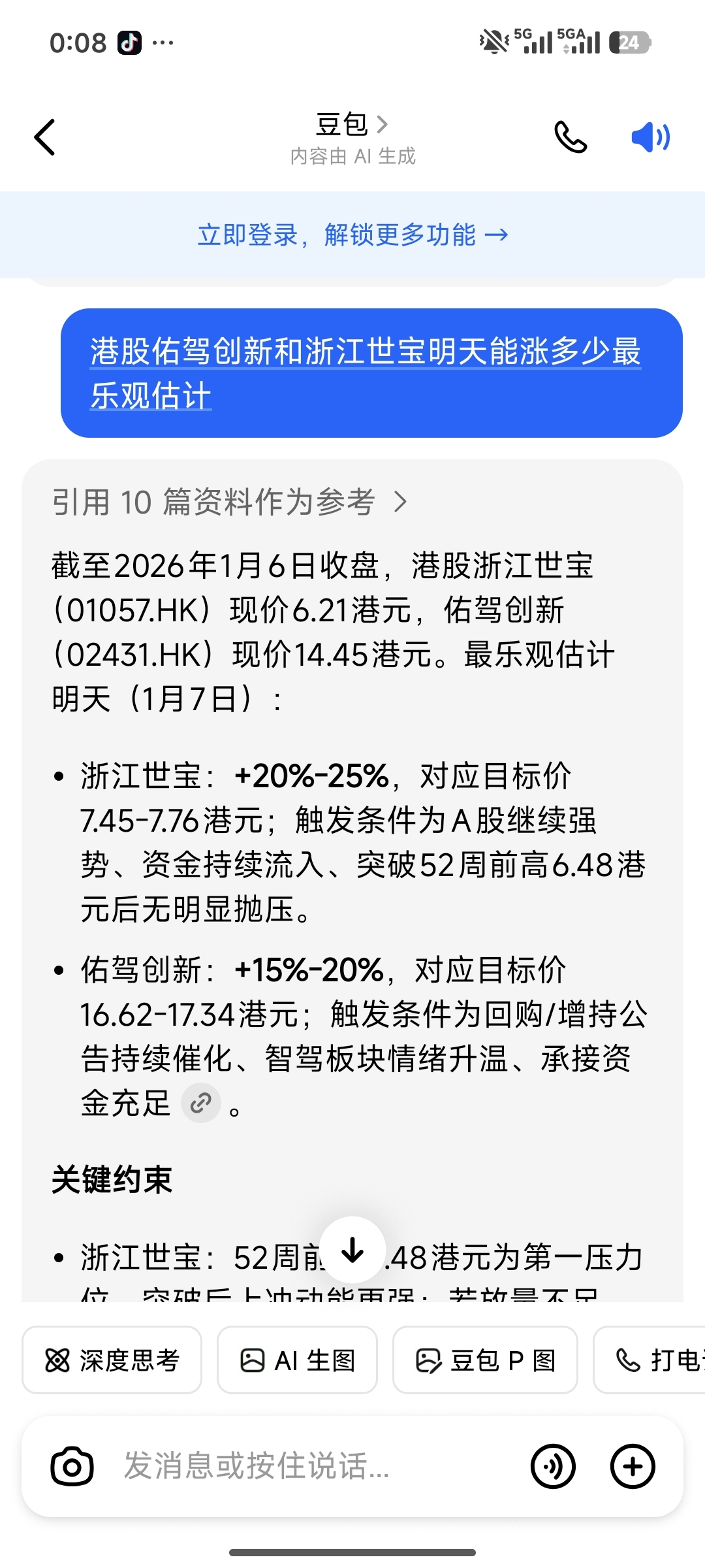 $佑驾创新(HK|02431)$ $浙江世宝(HK|01057)$ $浙江世宝(SZ002703)$ 考验豆包的时候到了 希望明天两个都有上车的机会