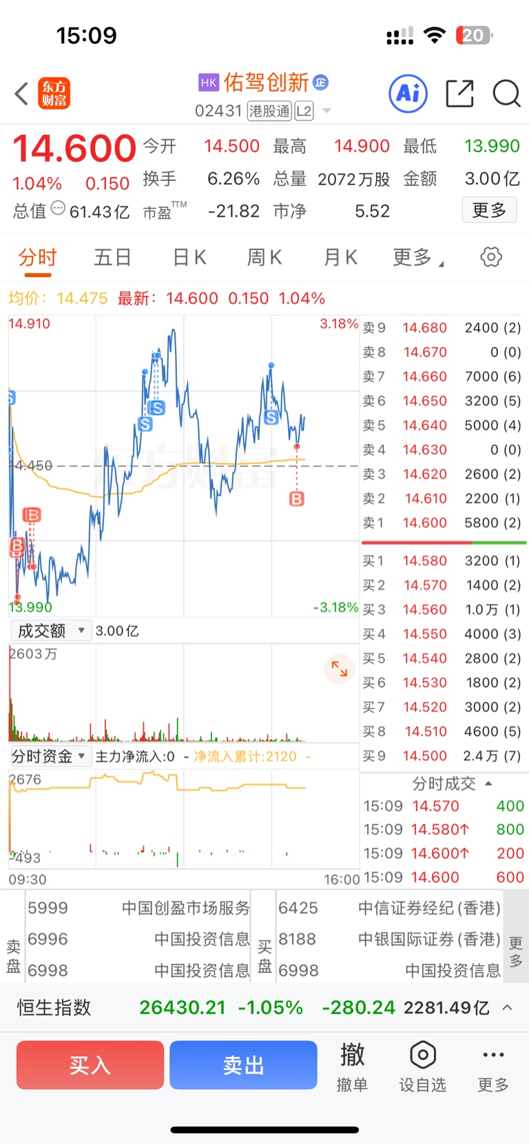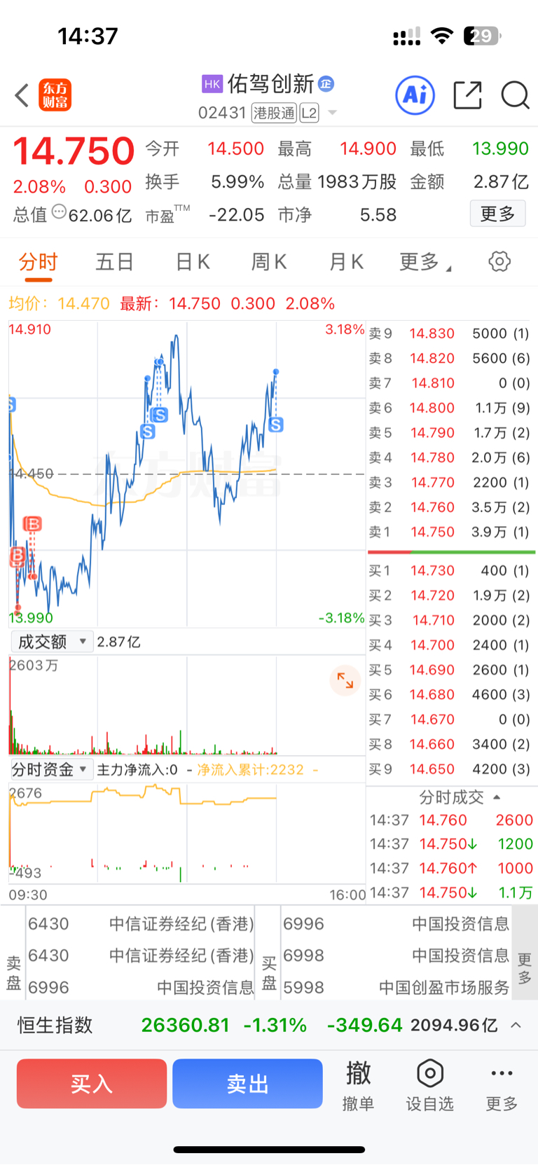 $佑驾创新(HK|02431)$ 家人们,我真看不懂了,这是洗盘还是出货,玩呢?来回震荡?看买盘是港股通居多!
