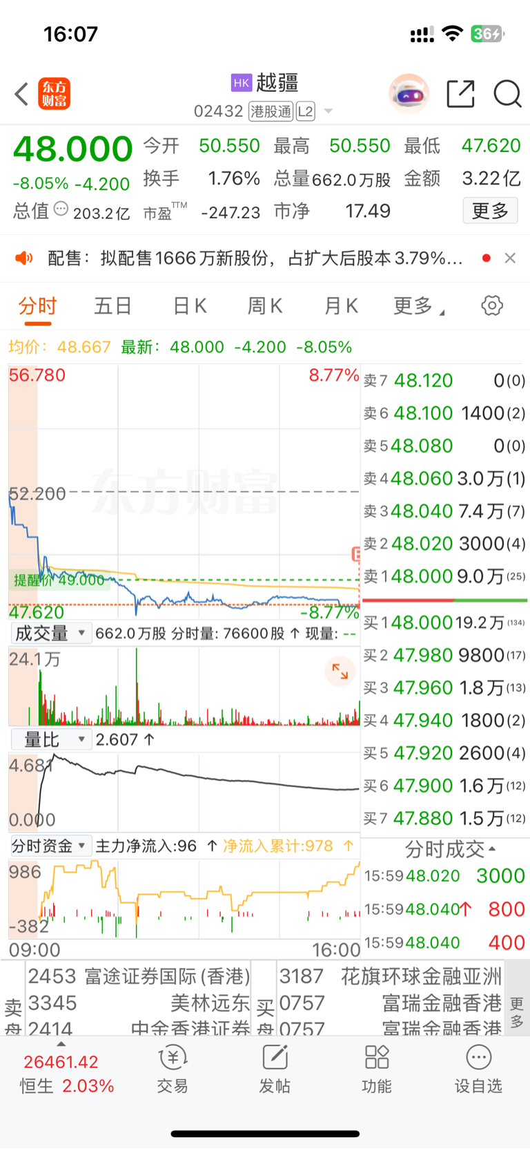 $越疆(HK|02432)$ 尾盘回来建仓,这主力真,但是股价高于配售价才能成功,现在买可能早点,明天如果再跌可以再买点。