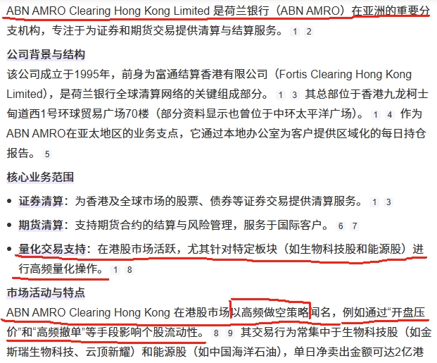 ABNAMROClearingHK,在港股以高频做空策略闻名,如开盘压价,高频撤