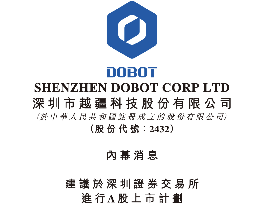 12月29日晚间,深圳市越疆科技股份有限公司(简称“越疆”)在港交所公告称,公司已决定启动首次公开发行人民币普通股及于深圳证券交易所上市计划(“建议A股上市”)。公司董事会已议决和批准开始有关建议A股上市的相关工作。