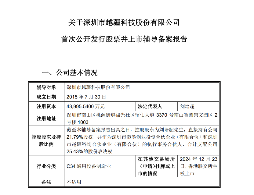 12月30日,据证监会公开发行辅导公示系统显示,“协作机器人第一股”越疆(2432.HK)向深圳证监局完成IPO辅导备案,由国泰海通担任辅导机构。
