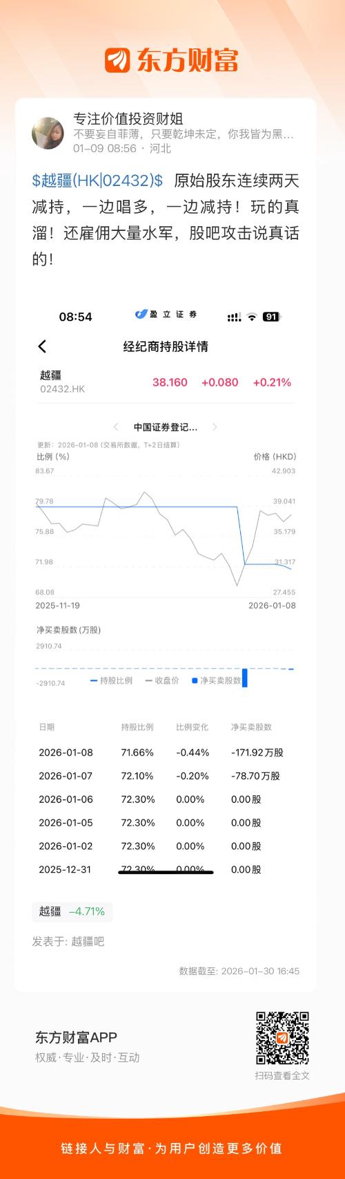 $越疆(HK|02432)$  原始股东连续两天减持,一边唱多,一边减持!玩的真溜!还雇佣大量水军,股吧攻击说真话的!