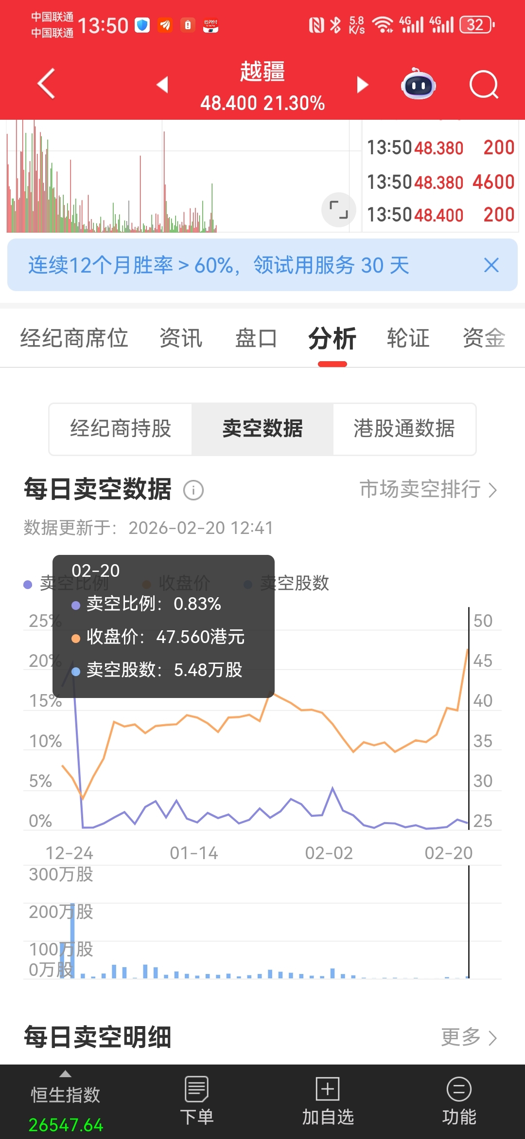 $越疆(HK|02432)$越疆只有0.83%做空比例,没有外资敢做空!当然是看好