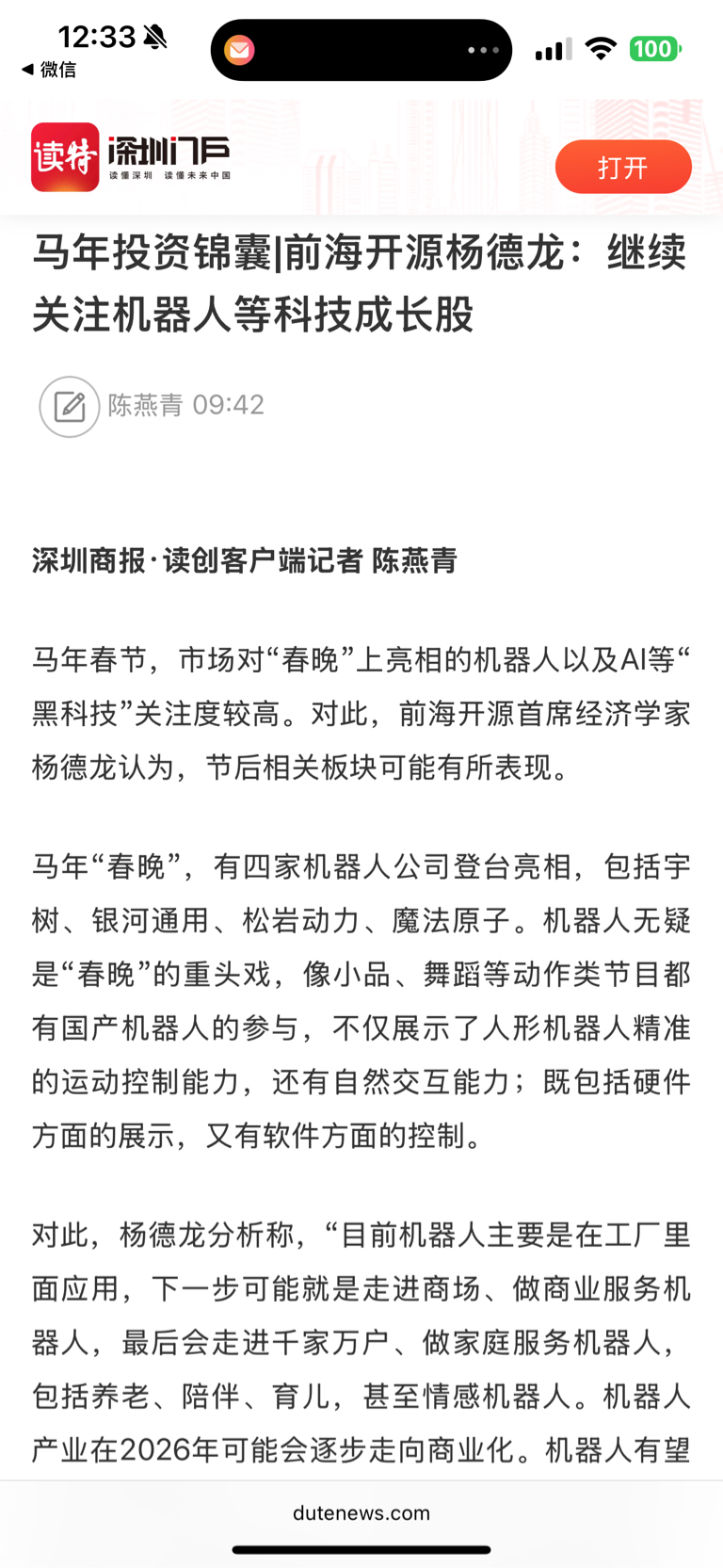 杨德龙看好机器人