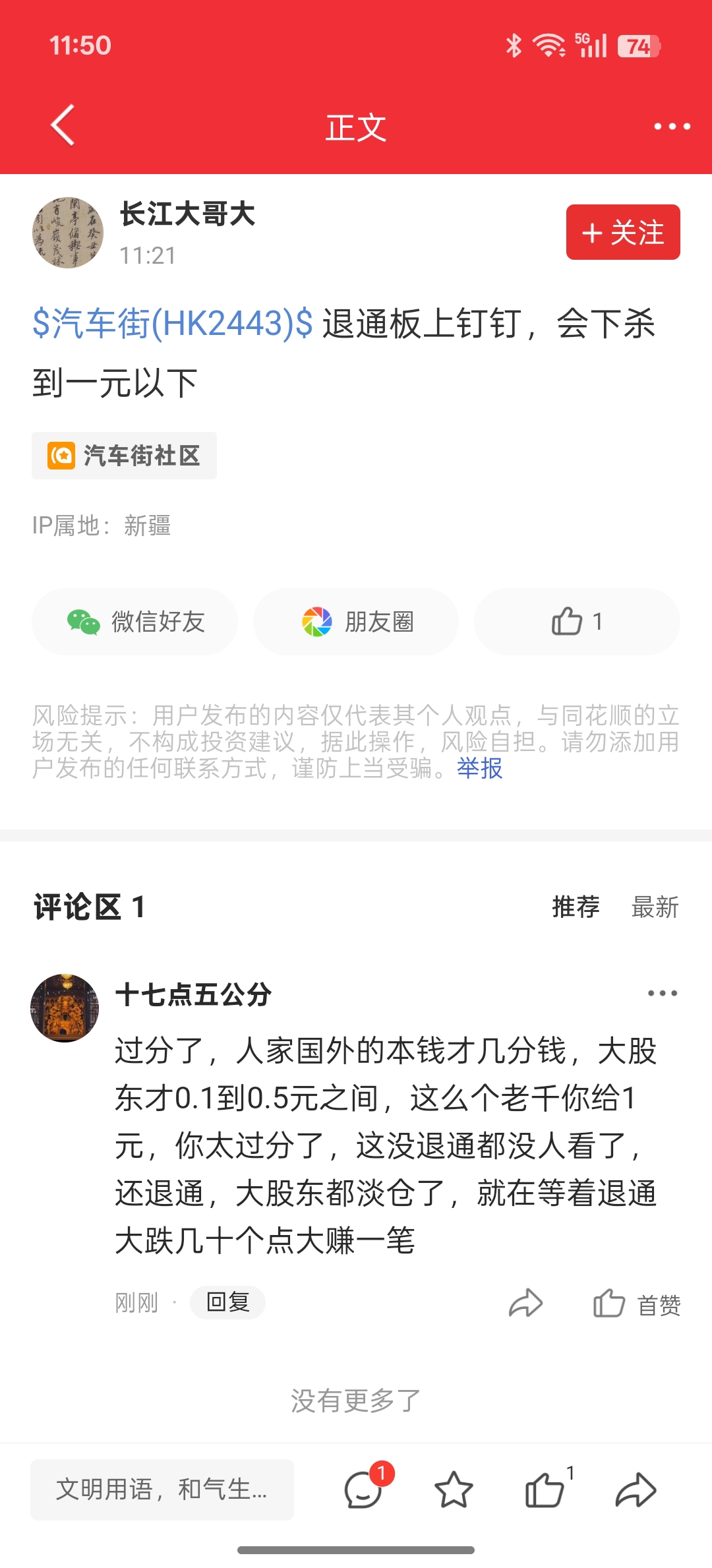 温馨提示: 1.根据《证券法》规定,禁止编造、传播虚假信息或者误导性信息,扰乱证券市场;2.用户在本社区发表的所有资料、言论等仅代表个人观点,与本网站立场无关,不对您构成任何投资建议。用户应基于自己的独立判断,自行决定证券投资并承担相应风险。《东方财富社区管理规定》