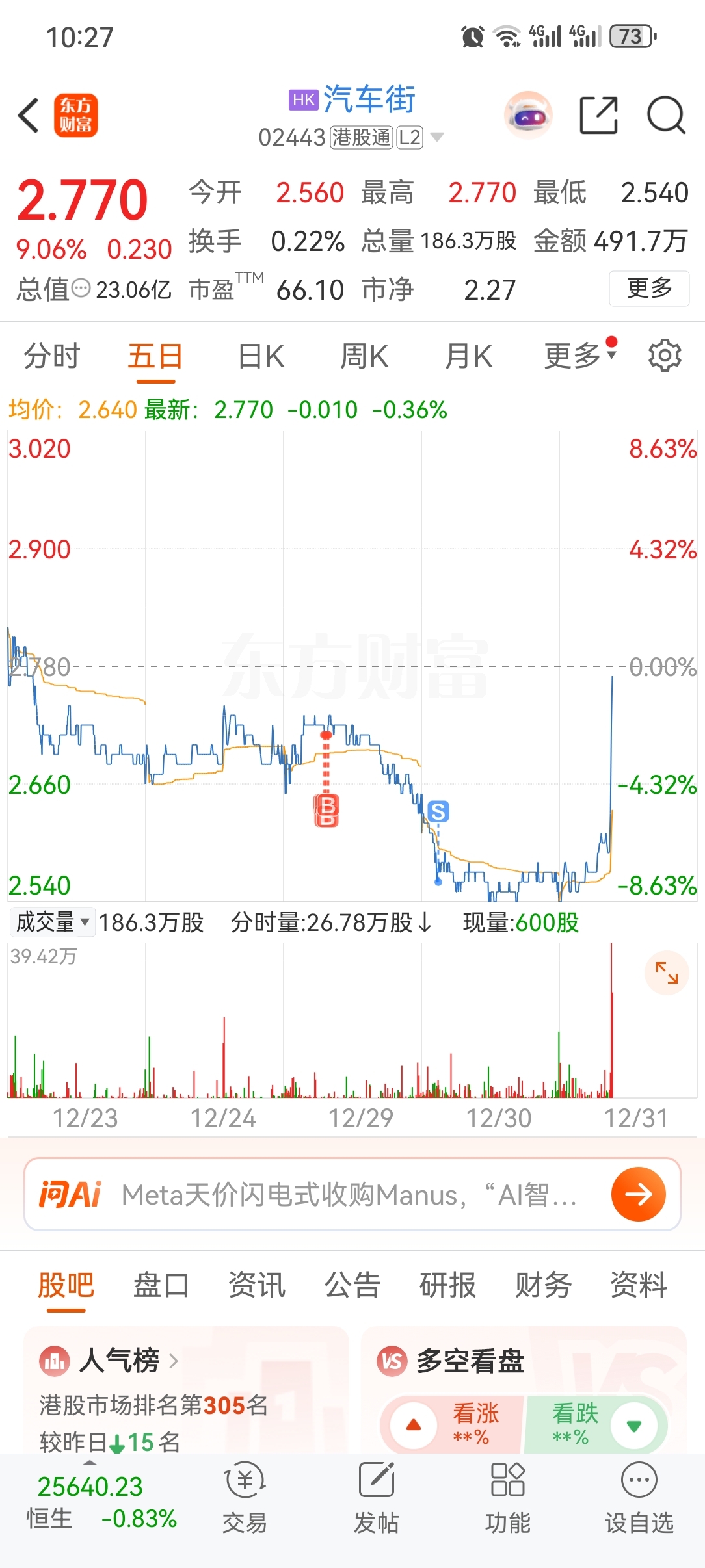 $汽车街(HK|02443)$ 嚓你,麽啊,前天买,昨天大跌,今天又涨回去了